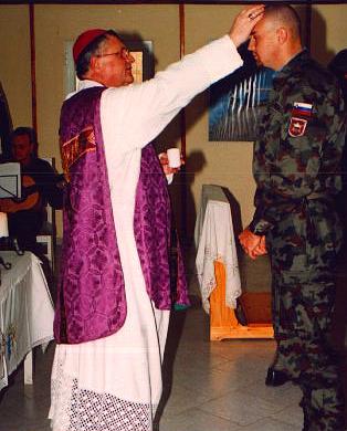 Aschermittwoch 1999: Militärbischof Msgr. Werner feiert ein Pontifikalamt im Camp Duke Leopold (Famagusta) und firmt vorbereitete Soldaten.